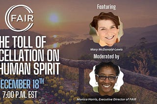 Voice actor Mary McDonald-Lewis in conversation with FAIR Exec Director Monica Harris on The Toll of Cancellation on the Human Spirit – tonight at 7 PM…